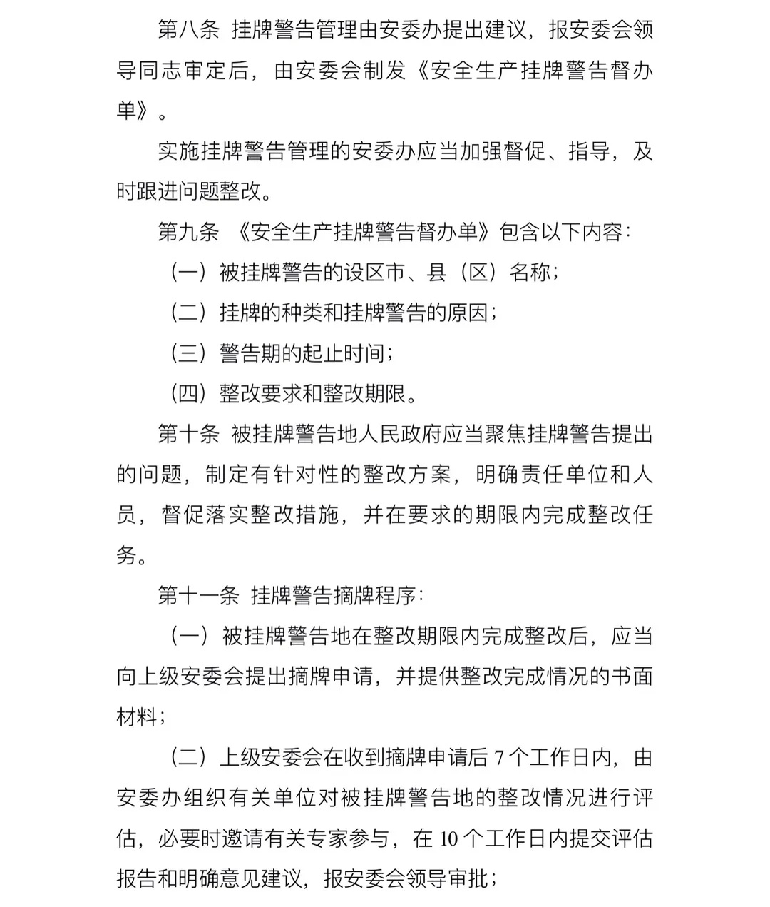 三是明確掛牌警告實施程序和掛牌警告督辦單內容,并由各級安委會辦公室承擔具體工作;