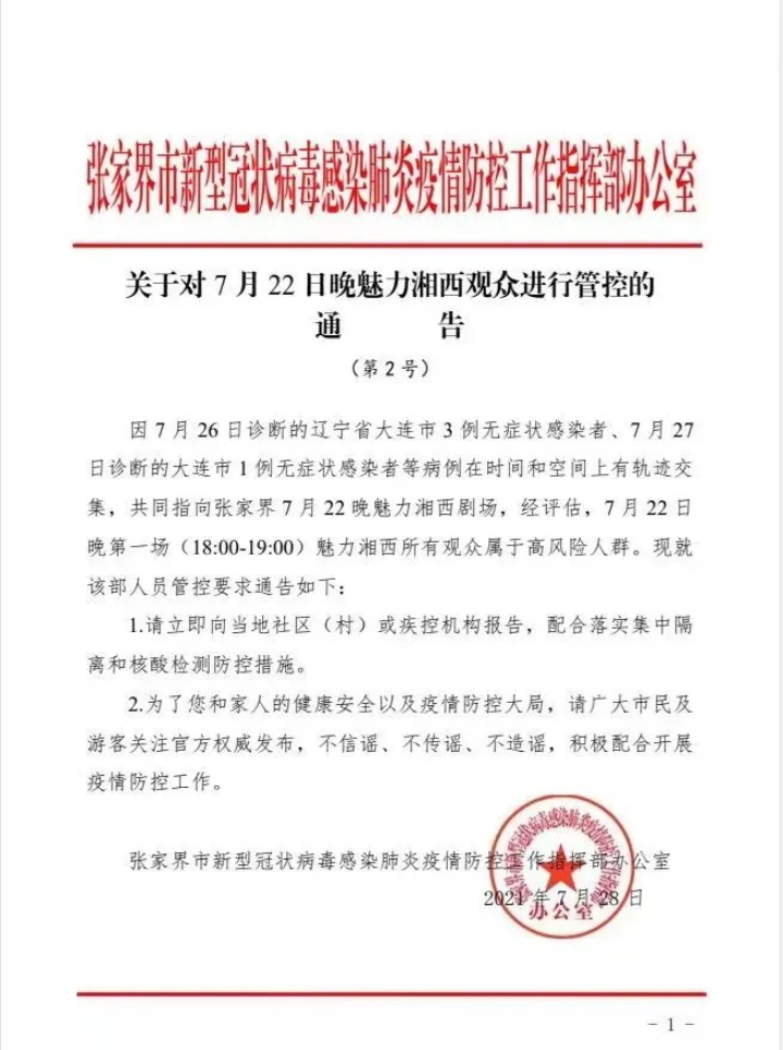二、2021年7月17—27日有湖南張家界市旅居史的來宜返宜人員,尤其是22日參加過湖南省張家界風(fēng)景區(qū)當(dāng)日18:00—19:00“魅力湘西”大型演出的所有觀眾屬于高風(fēng)險(xiǎn)人群,須第一時(shí)間主動(dòng)向所在社區(qū)(村組)、單位報(bào)告,并接受社區(qū)(村組)管理,開展不少于2次的核酸檢測,并自離開之日起,按照“填平補(bǔ)齊”的原則實(shí)施14天集中隔離,集中隔離期間隔日開展1次核酸檢測。