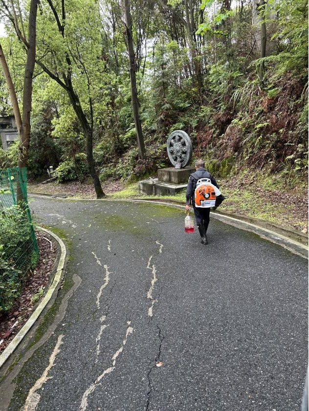 集團(tuán)園林公司分別于4月24日、25日前往禪博園、花博園,與景區(qū)和養(yǎng)護(hù)單位負(fù)責(zé)人,采用乘坐電瓶車和步行兩種方式對養(yǎng)護(hù)現(xiàn)場進(jìn)行檢查,對檢查過程中未養(yǎng)護(hù)到位的區(qū)域要求養(yǎng)護(hù)單位進(jìn)行整改,并安排部署五一假期前的工作。為更好落實(shí)安全生產(chǎn)工作,園林公司在本月中旬對禪博園園林綠化養(yǎng)護(hù)隊(duì)伍進(jìn)行優(yōu)化,辭退部分超齡臨時(shí)工人,在保證安全的前提下完成園林綠化養(yǎng)護(hù)工作。